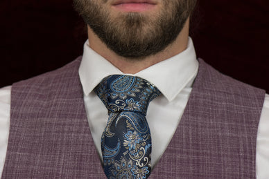 Das Paisley-Muster, ein Symbol für Unterscheidung und sicheren Geschmack, verleiht dieser Krawatte eine Aura britischer Eleganz. Die tiefen Blautöne, akzentuiert mit goldenen und elfenbeinfarbenen Details, schaffen ein subtil schimmerndes Lichtspiel, das den Blick anzieht, ohne jemals übertrieben zu wirken. Jede Kurve des Musters wurde entworfen, um Bewegung, Fluss und natürliche Präsenz zu vermitteln.