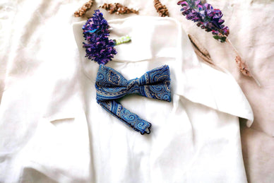 The silk bow tie is the ultimate symbol of a refined look. This silk bow tie, in a flowing and luminous fabric, is a strong piece in any modern bow tie suit outfit. With its royal blue and indigo floral arabesques, this Calypso edition silk bow tie revisits the codes of vintage with style and audacity. 💙