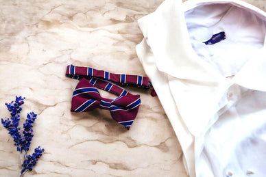 - Red silk bow tie with stripes