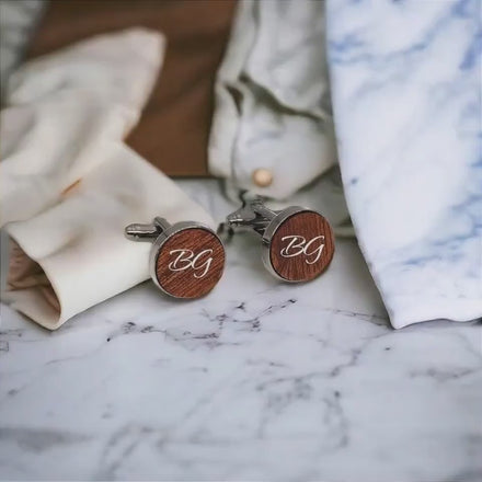 With their elegant wooden design, these sleeve cufflinks add a touch of originality and class to any wedding suit. The personalization with the engraved monogram makes them even more special, an ideal choice for important moments like the wedding or a special event. 🕴️