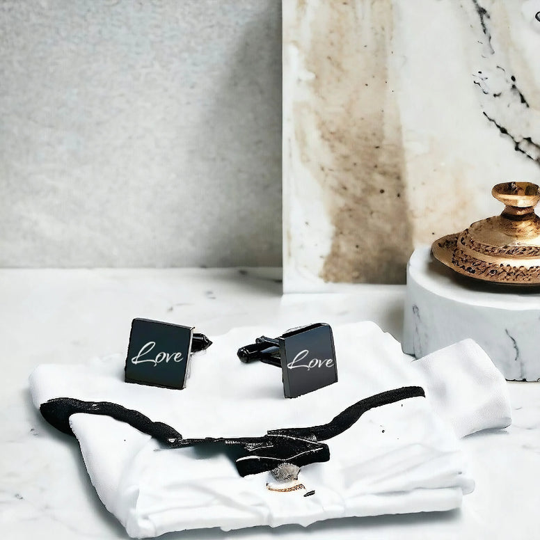 These personalized black steel cufflinks are the ultimate accessory to add elegance to your wedding attire. Inspired by the bold style of Frank Shelby, these elegant cufflinks are perfect for a wedding or any other formal occasion. Their unique and modern design pairs perfectly with a wedding suit or any civil wedding outfit. 🌟
