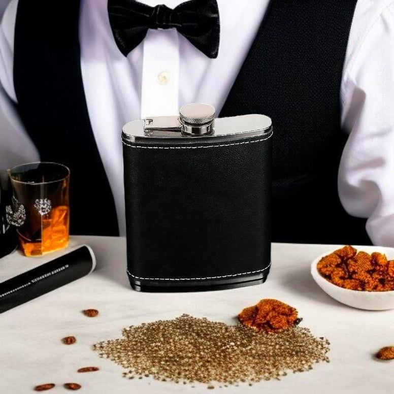 With the option to personalize this product with an engraved monogram, this flask becomes a perfect personalized gift for a special occasion. Whether for a Valentine's Day gift or a birthday, this stainless steel model stands out for its elegant aesthetic and practicality. The high-quality leather completes this flask, providing a perfect contrast to the steel. 💎