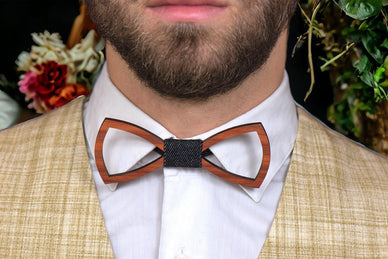De vlinderdas voor kostuums is veel meer geworden dan een simpel formeel accessoire: het is een stijlkenmerk. Deze minimalistisch ontworpen houten vlinderdas met open details is modern, elegant en uniek. Of u nu een trouwoutfit voor een burgerlijke man voorbereidt of een ceremonie geïnspireerd op de jaren 20, deze vlinderdas van natuurlijk hout past bij alle verfijnde dresscodes. 🎩