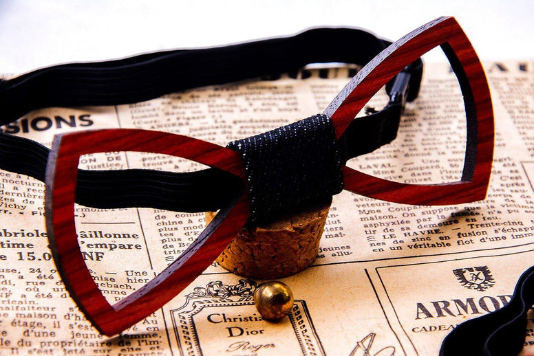 🪵 Vlinderdas van gesneden hout, geometrisch open design