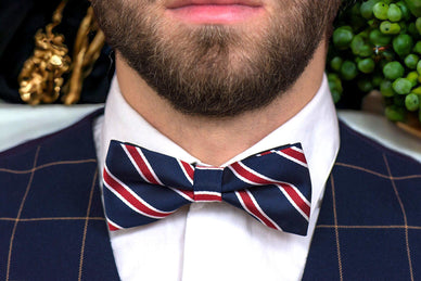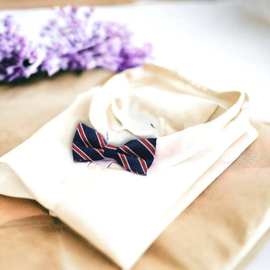 Deze blauw-rood gestreepte kostuumvlinderdas is een juweel van verfijning geïnspireerd op retro looks, perfect voor een burgerlijke trouwoutfit of een Peaky Blinders thema-avond. Gemaakt van hoogwaardige zijde, belichaamt hij zowel traditie als moderniteit. 💙
