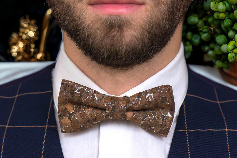 Deze bruine kurken kostuumvlinderdas is op zichzelf al een stijlverklaring. Ideaal voor een bruidsoutfit voor de burgerlijke stand, het biedt een originele houtachtige esthetiek die perfect past in de bohemien chic bruidsmode of de elegantie van Peaky Blinders. 🎩