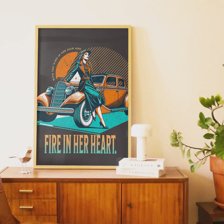 Fire in Her Heart incarne l’indépendance et la puissance féminine dans un décor vintage qui ressort avec élégance. 💃