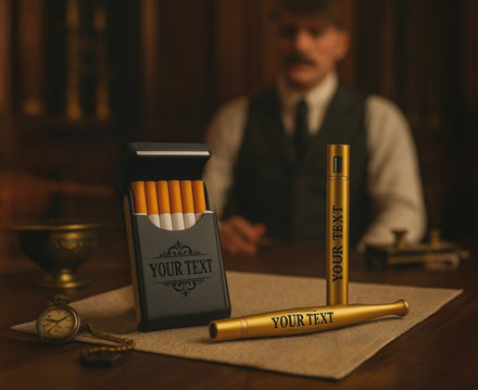 Plongez dans l’univers des gentlemen d’époque avec cet ensemble fumeur personnalisé au charme intemporel. Inspiré de l’ambiance rétro des années 20 et du style affirmé des héros comme Thomas Shelby, ce lot de trois accessoires est pensé pour les amoureux d’objets rares et sophistiqués.✨
