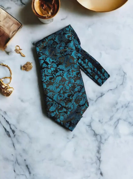 🎩 Cravate ascot en soie bleu Fenhli, une touche élégante et unique à votre look