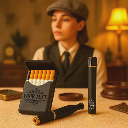 Plongez dans l’univers des gentlemen d’époque avec cet ensemble fumeur personnalisé au charme intemporel. Inspiré de l’ambiance rétro des années 20 et du style affirmé des héros comme Thomas Shelby, ce lot de trois accessoires est pensé pour les amoureux d’objets rares et sophistiqués.✨